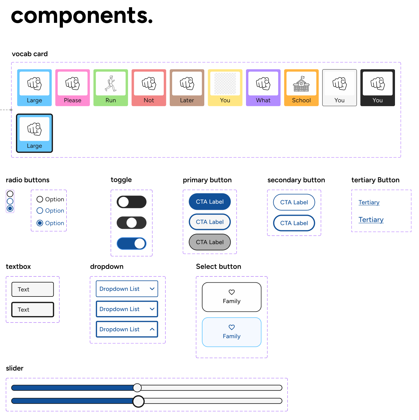I used Auto Layout, components, and variants to ensure scalability. My focus in this stage was aligning usability learnings with design accessibility standards, making communication fast, clear, and intuitive for caregivers and AAC users.