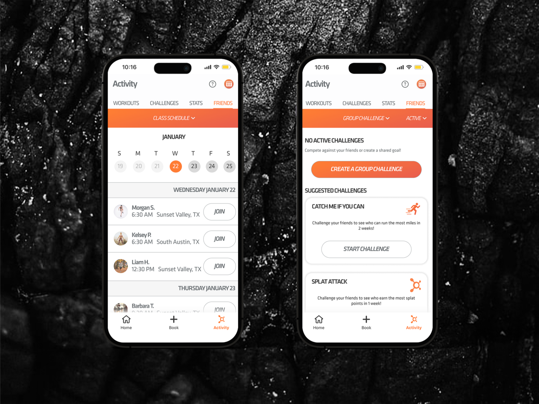 A new feature for the Orangetheory app allows users to easily view and join their friends in different classes, as well as start fun challenges or goals together.